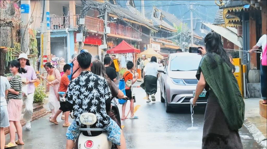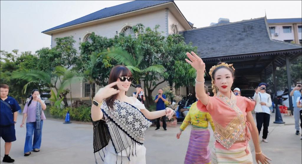 视频里,西双版纳街头正上演着全民狂欢。从 4 月 13 日到 15 日,当地民众和游客互相泼洒吉祥之水,气氛火热。李小璐也沉浸其中,还被人偶遇在古寨里临时跟着跳起了傣族舞。虽然舞蹈是现学的,但她律动感十足,跳得大方自信,在人群里格外亮眼。